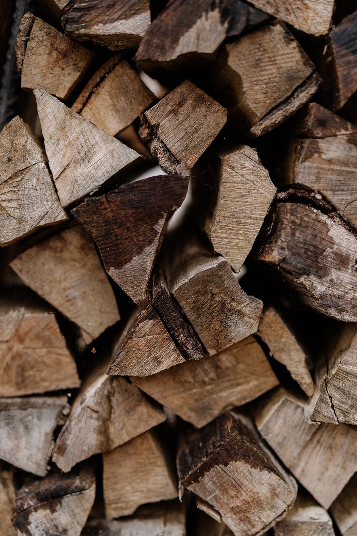 Before beauty however comes clearing. We/he have been removing waste that was here when we arrived, only to uncover more hidden beneath. Old branches, discarded wood, forgotten corners. Slowly, methodically, the process of chopping and stacking has continued. Some of it now lives neatly in the wood shed, ready for the log burner. We have already used a little, and there is something deeply grounding about warming the house with wood gathered from your own land. A quiet circularity. A sense of stewardship rather than consumption.